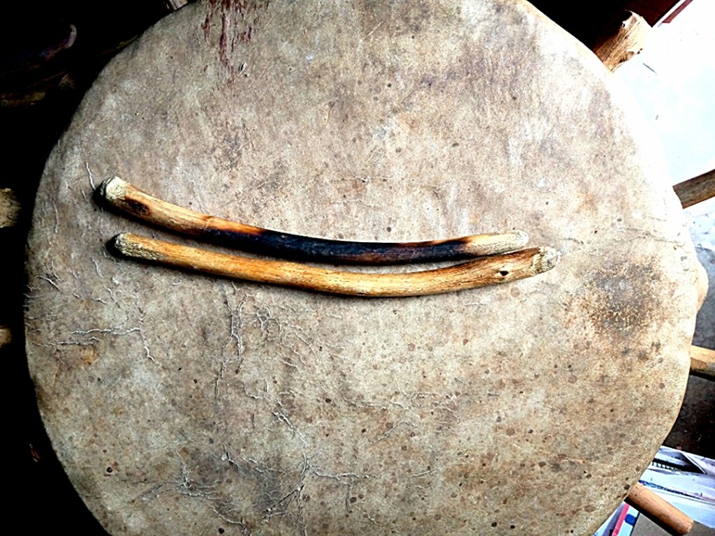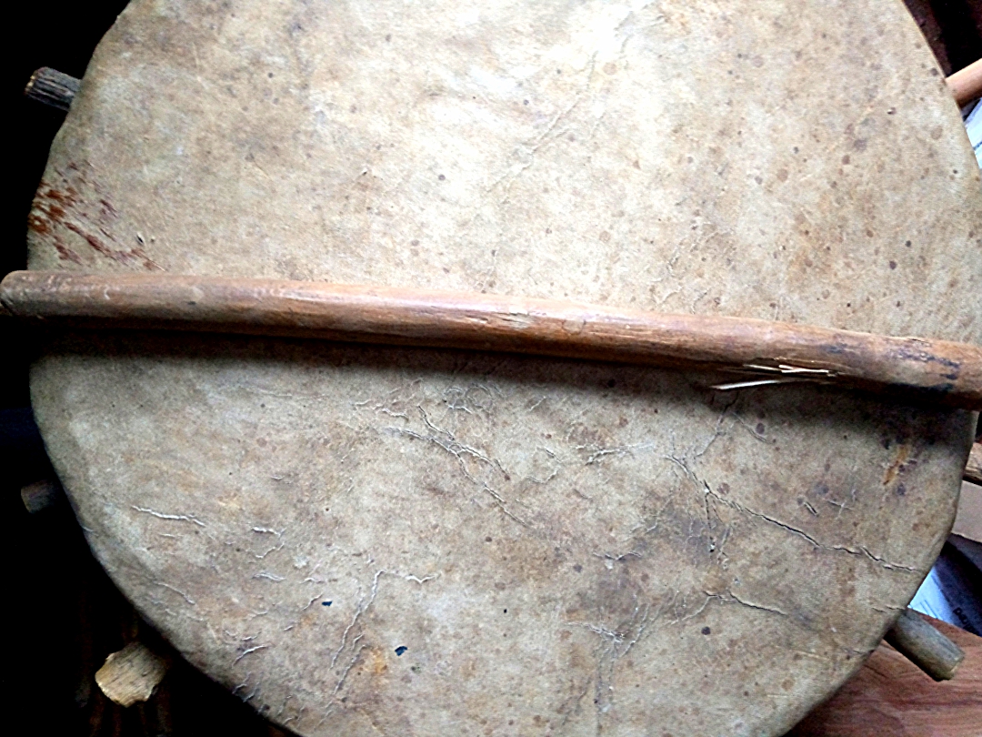 We grew up with overwhelming awe and respect for this drum; for example, no one was allowed to sit on any part of the drum, even the sides where there is no skin.
