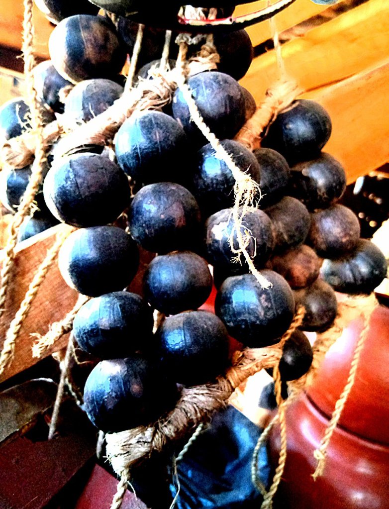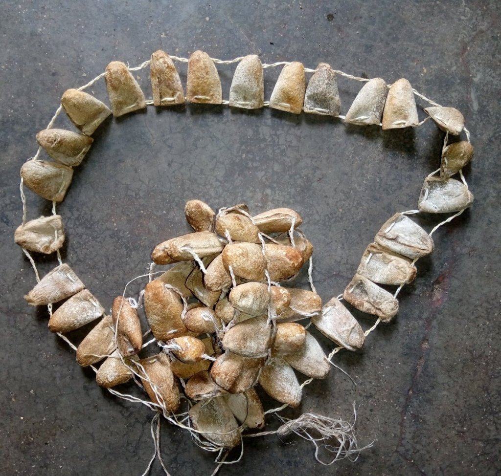Amahlwayi are a strap of small shakers and strings. The small shakers are from a Amahlwayi plant that has pods (Volume 10ml) that are dried. The string is made from either plastic strings from sacks or from Isikusha which is a fibre plant.