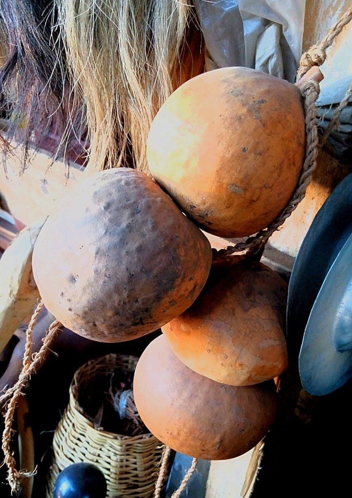 Karanga Magavhu are 2 or 3 round gourds, each having 2 holes and a stick that goes through them and held together by a string that is also the one tied to the leg. Some of the Dances that use Magavhu are Mbakumba, Bira, Mhande